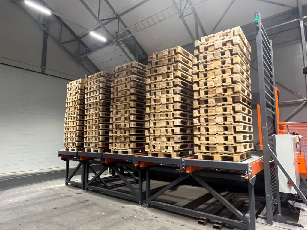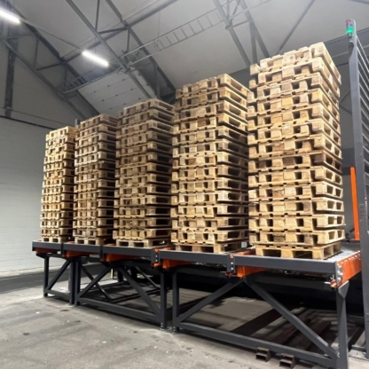 De door Pallet Sorting Systems ontworpen en vervaardigde machines behoren tot de topklasse als het gaat om kwaliteit in palletreparatie. Ze automatiseren het reparatieproces, inclusief eventuele markeringen, en het stapelen van pallets. Met een verhoogde verwerkingscapaciteit per uur kan één reparatiemedewerker 20% meer pallets op een werkdag verwerken. Dit betekent minder fysieke inspanning. Bovendien zijn al onze machines modulair configureerbaar, wat betekent dat we standaardmaatwerk bieden. Dit maakt aanpassingen aan de machine mogelijk, zodat deze perfect aansluit bij jouw locatie en specifieke eisen om een hogere productiviteit te waarborgen.