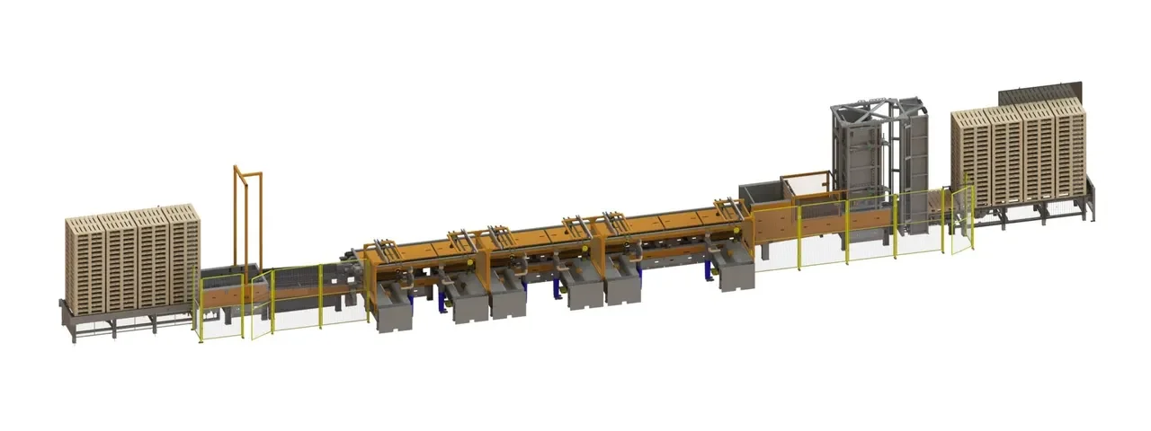Ons Pallet Reparatiesysteem is beschikbaar in twee varianten: de vaste reparatielijn en de verstelbare reparatielijn. De vaste sorteermachine is geschikt voor pallets met afmetingen van 120 x 80 cm en 120 x 100 cm, zoals europallets en blokpallets. Deze machine kan ook pallets verwerken met bruggen op de lange zijde of een rondlopend onderdek, maar voor pallets met een andere opbouw is een extra aanpassing vereist. Optioneel kunnen ook de afmetingen van 120 x 120 cm pallets of 48-inch pallets aan deze machine worden toegevoegd.